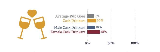 The research also showed when going on a date, one-fifth (20%) of cask ale drinkers are more likely to visit the pub compared with 15% of average pub-goers. More than one-quarter (28%) of female cask drinkers are more likely to do so than their male counterparts (18%).